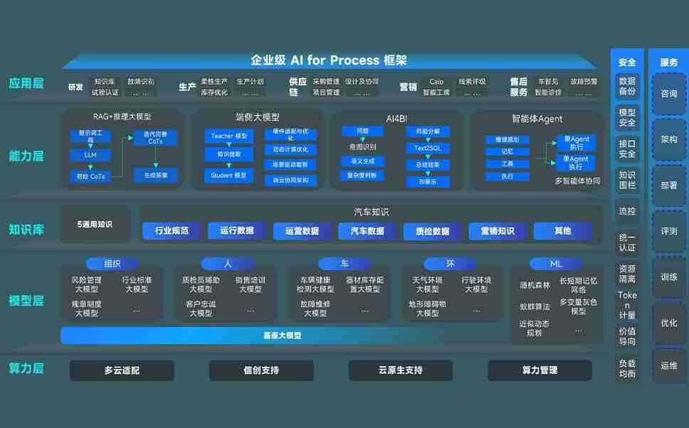 端到端的一站式AI工作空间深度融合了从企业战略规划到日常经营的全流程业务板块,,定向解决车企内部领域多、、、部门多、、、、链条长、、场景碎片化等难题,,支持车企快速构建以AI为核心的生产力写作体系,,实现任务执行与AI能力的无缝集成与交互