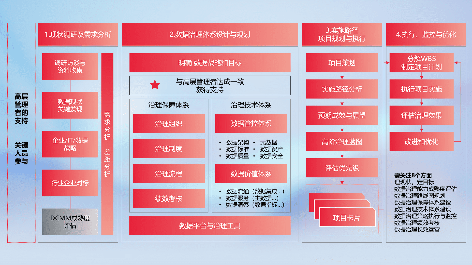 制定并执行统一的数据标准,,规范数据定义和格式,,,,消除冗余和不一致性,,,,实现跨部门和跨系统的数据一致性,,,为企业提供标准化的数据基础。。。。